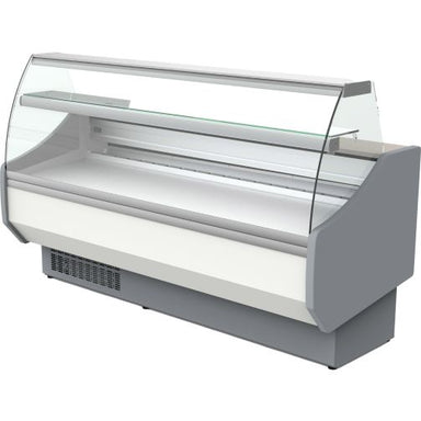 Coreco CVED-8-20-C Curved Glass Serveover, 2025mm W2025 x D800 x H1230 Temperature Range: -1°C to +5°C Description *GLASS CANOPY REQUIRES ASSEMB...